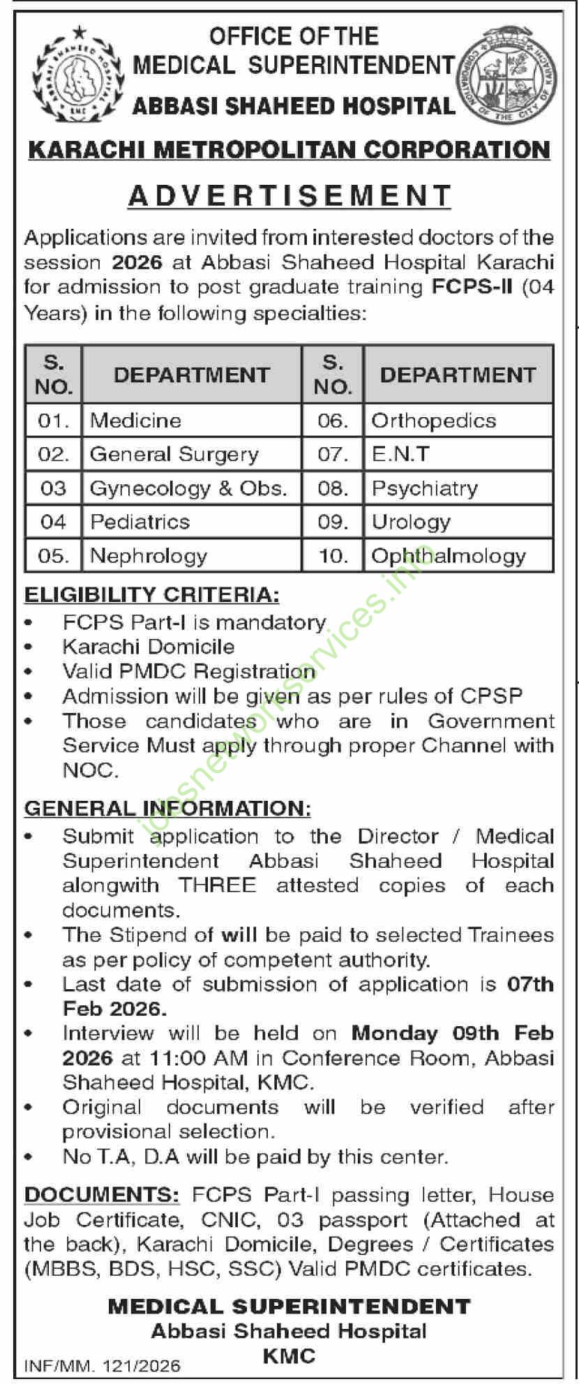 - Interview Venue: Conference Room, Abbasi Shaheed Hospital, KMC.