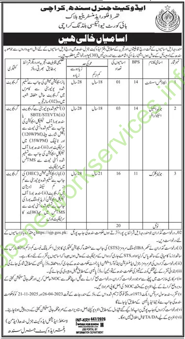 Job Vacancies: Office of the Advocate General Sindh