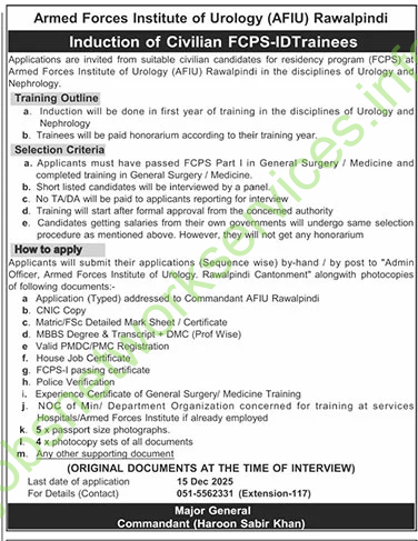 Armed Forces Institute of Urology (AFIU) Rawalpindi Jobs 2025 Latest