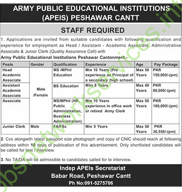 Army Public Educational Institutions APEIS Peshawar Jobs 2025 Latest