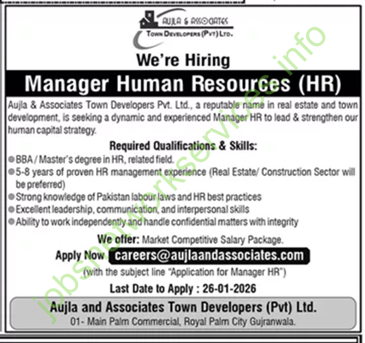 Aujla and Associates Town Developers Gujranwala Jobs 2026 Latest