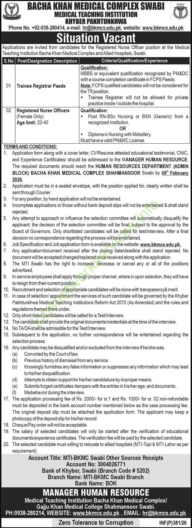 Bacha Khan Medical Complex Swabi New Jobs 2026 Latest
