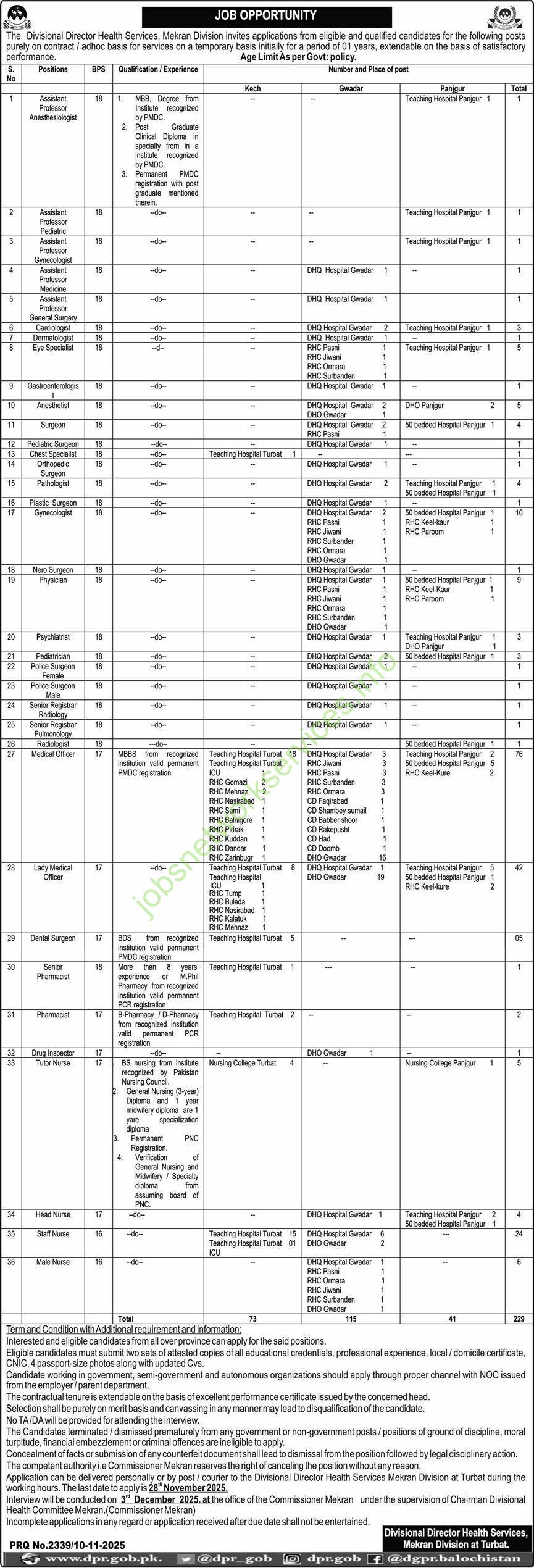 Senior Registrar (Specialist) 36 Posts 30 years Punjab DHQ Hospital Gwadar Teaching Hospital Panjgur