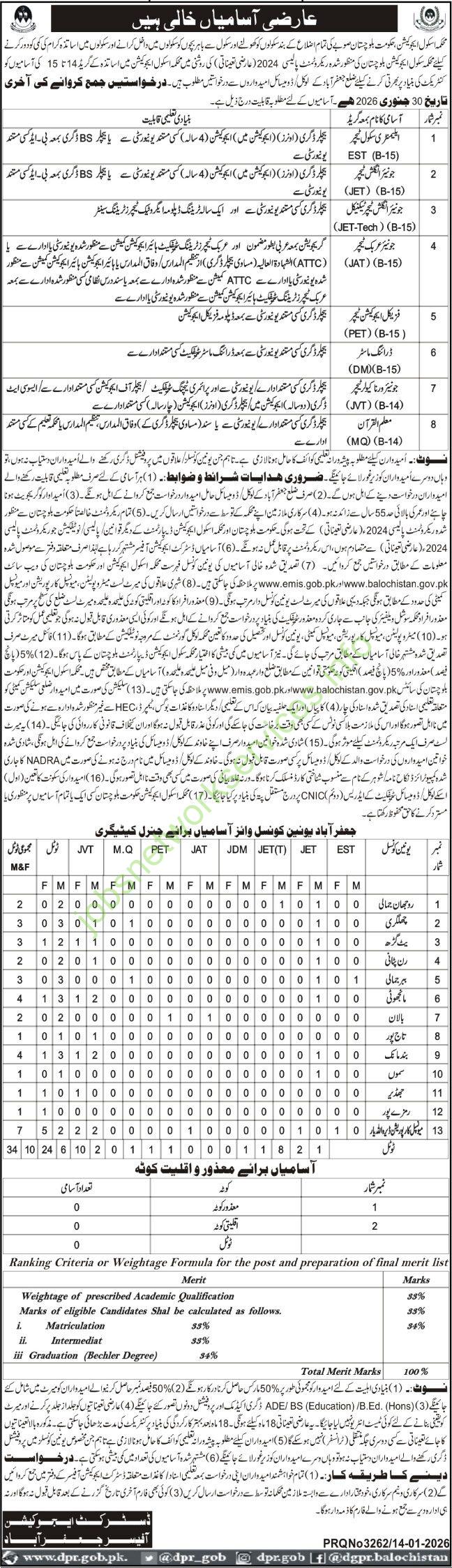 Balochistan School Education Department Jaffarabad Jobs 2026 Latest
