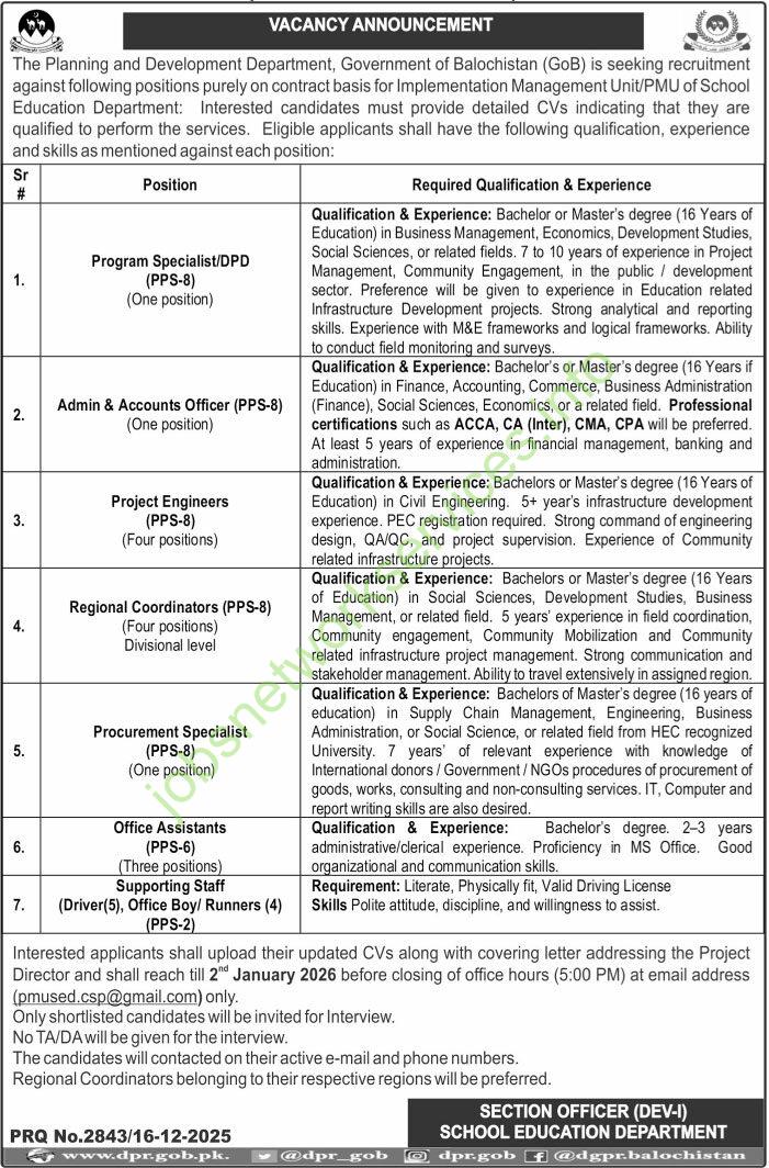 Job vacancy announcement from the Balochistan School Education Department. The query doesn’t specify a particular request, so I need to interpret what the user might need. Given the content, it’s likely they want a concise summary or structured presentation of the key details for clarity.