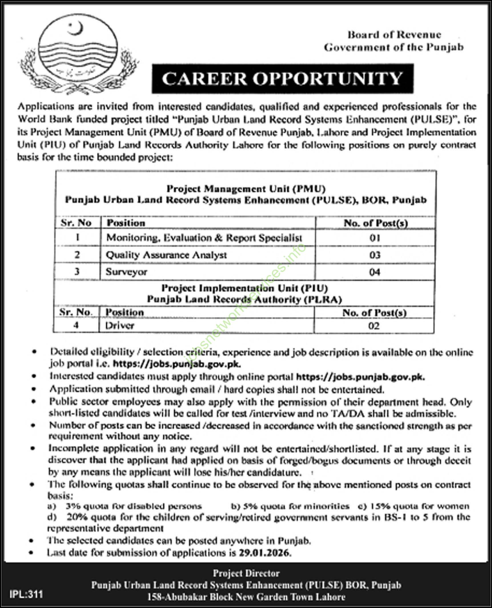 Board of Revenue Government of the Punjab Jobs 2026 Latest