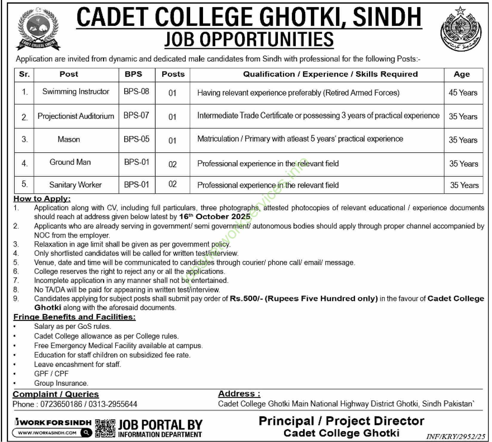 Cadet College Ghotki, Sindh – Job Opportunities 2025: Quick Overview