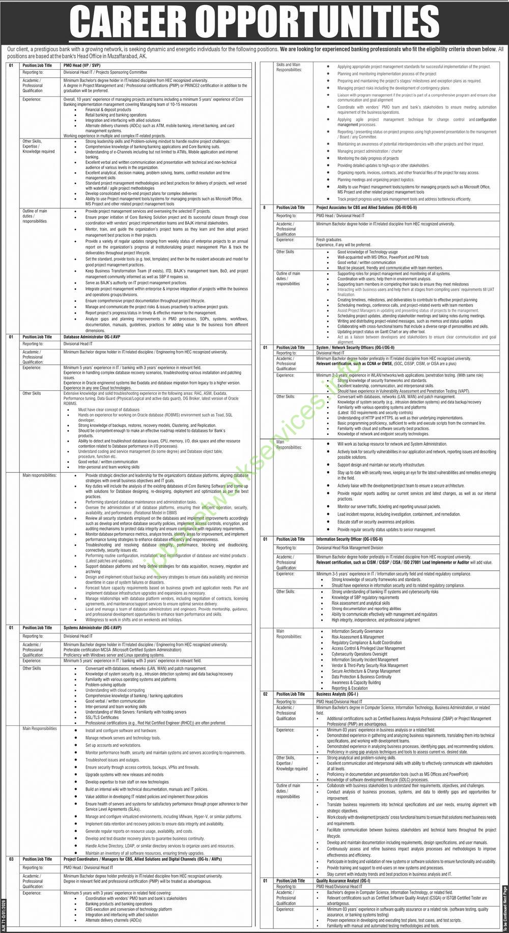 Career Opportunities Prestigious Bank Jobs 2026 Latest