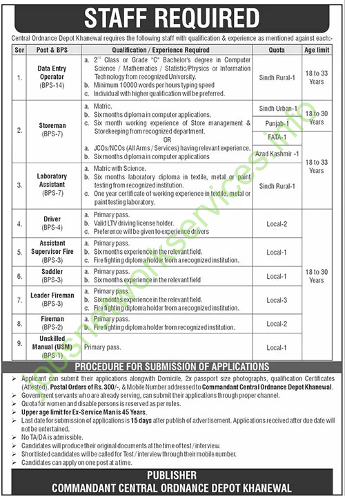• Submit applications addressed to the Commandant, Central Ordnance Depot Khanewal.