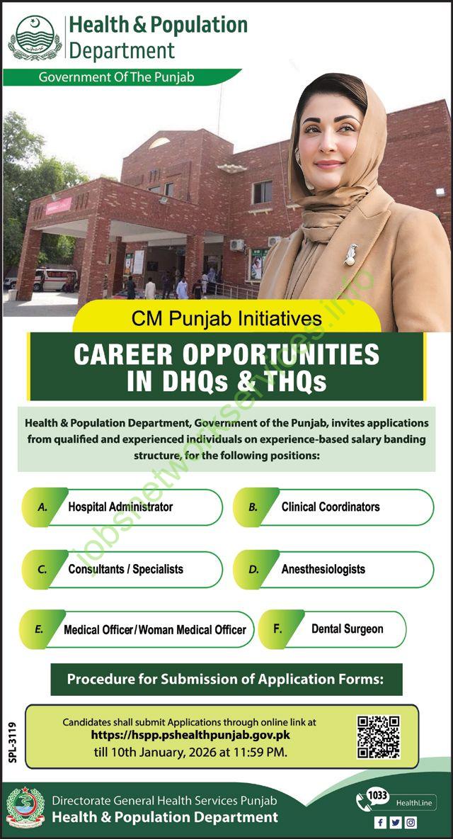 CM Punjab Initiatives Career Opportunities in DHQs & THQs Jobs 2026 Latest