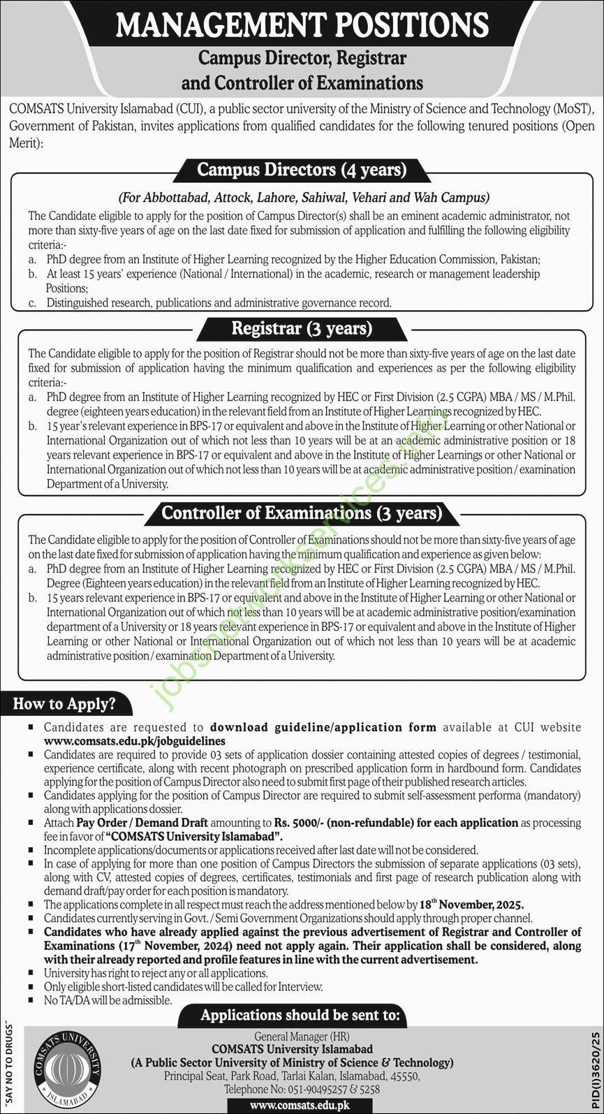 - Download: Get the application form and guidelines from comsats.edu.pk/jobguidelines.