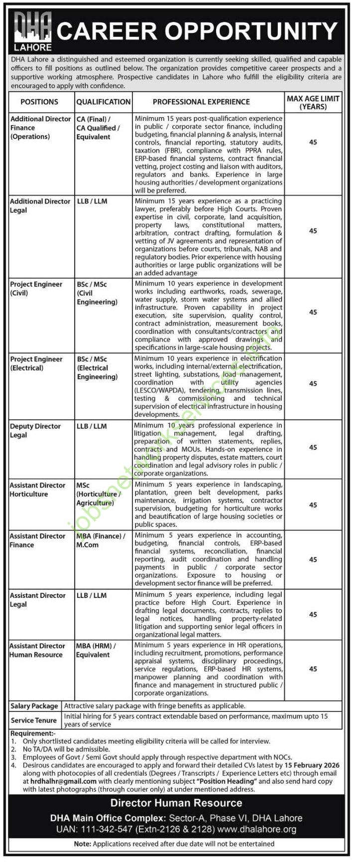DHA Lahore is seeking skilled, qualified, and capable officers for several positions. Below is a detailed breakdown of the available roles, requirements, and application instructions based on the provided advertisement.