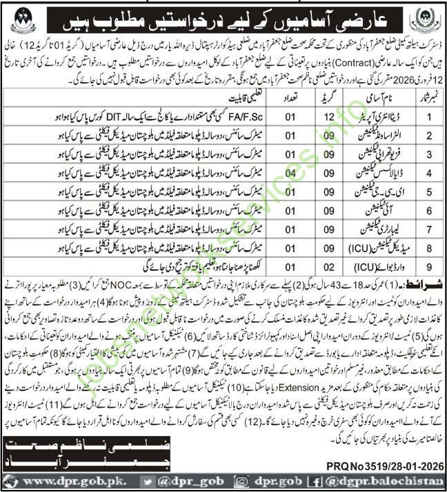 • Deadline: Applications must be submitted to the District Health Officer (DHO) Jaffarabad by February 12, 2026.