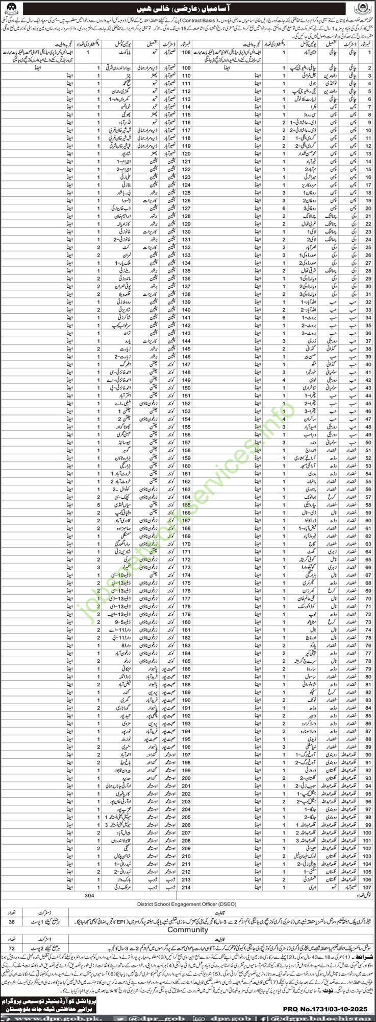 - Location:Must be a local resident of District Kech and can only apply for posts in your own Union Council.