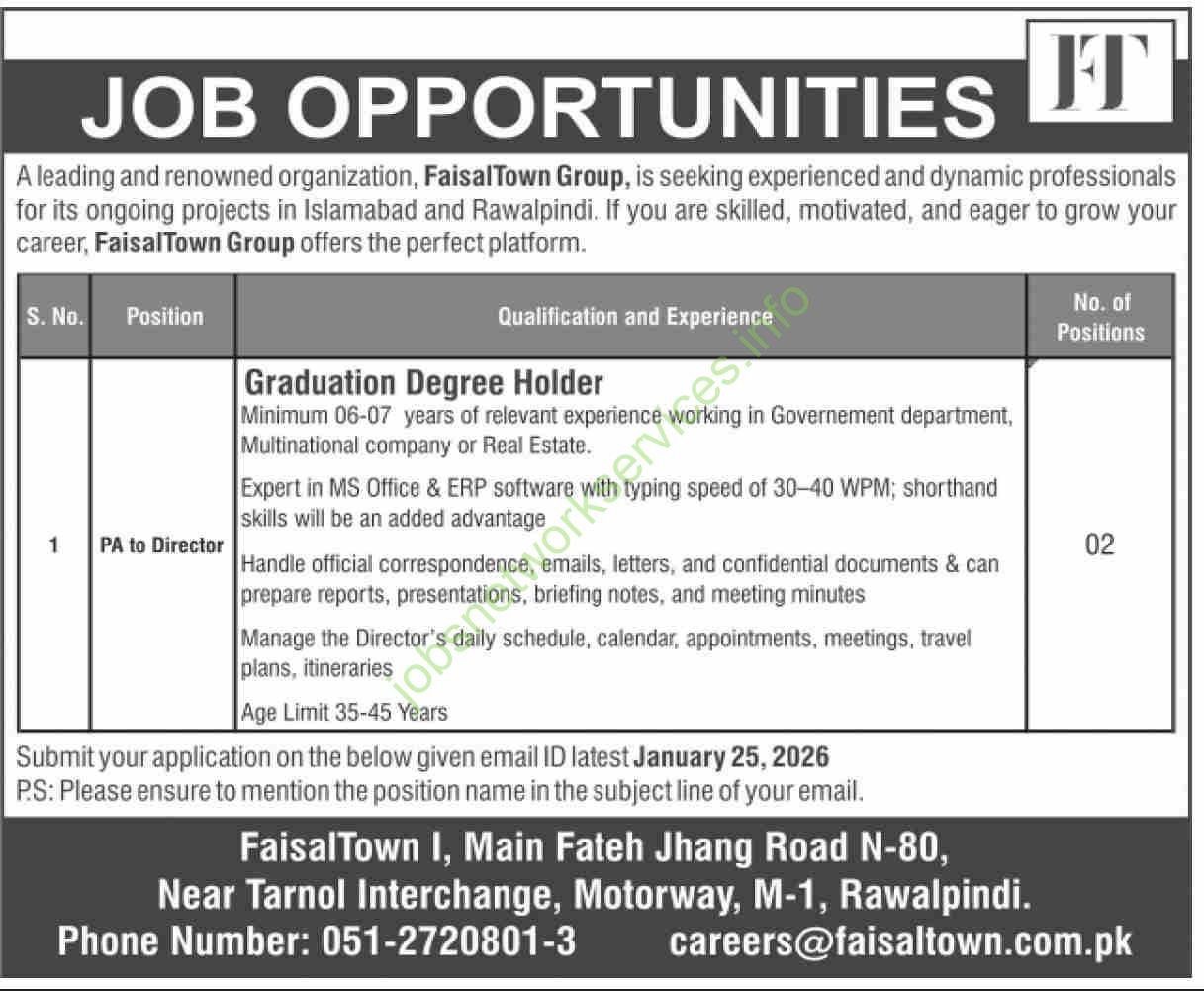 📋 Job Advertisement Summary: Faisal Town Group