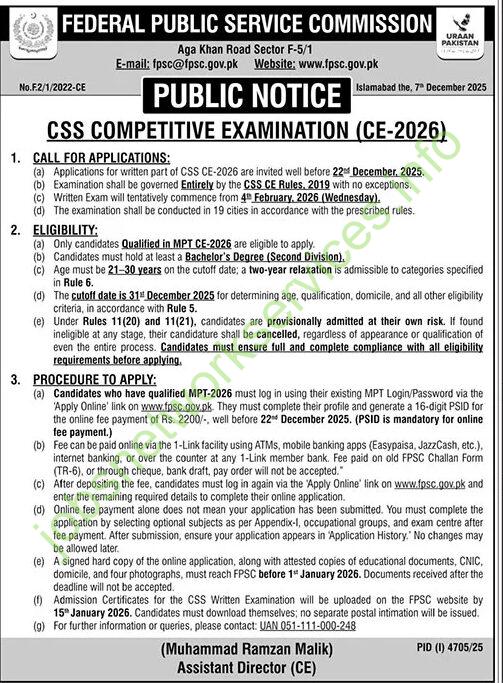 - Send Hard Copy: A signed printout of the online application, along with attested copies of educational certificates, CNIC, domicile, and four photographs, must reach FPSC by 1st January 2026.