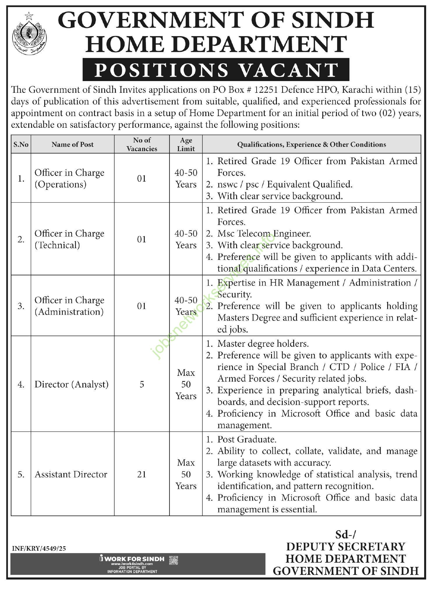 - The advertisement is officially signed by the Deputy Secretary, Home Department, Government of Sindh.