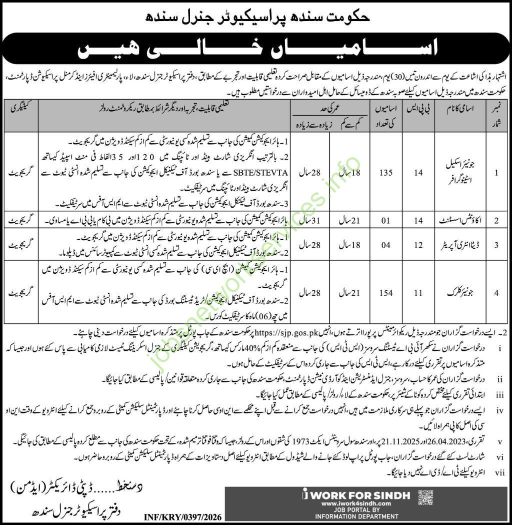 Government of Sindh Prosecutor General Sindh Jobs 2026 Latest