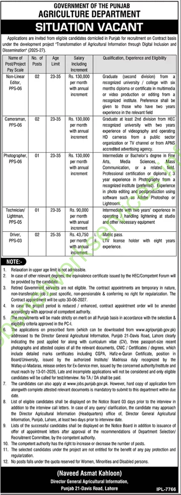 - Applications must reach the Director General Agricultural Information, Punjab, 21-Davis Road, Lahoreby 13-01-2026.