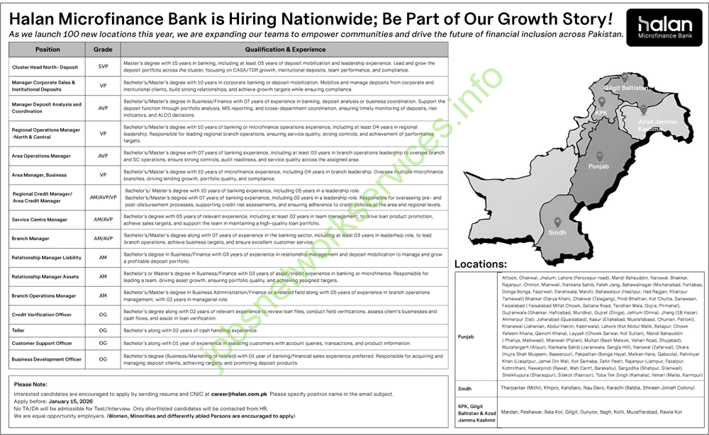 Halan Microfinance Bank is Hiring Nationwide; Be Part of Our Growth Story!