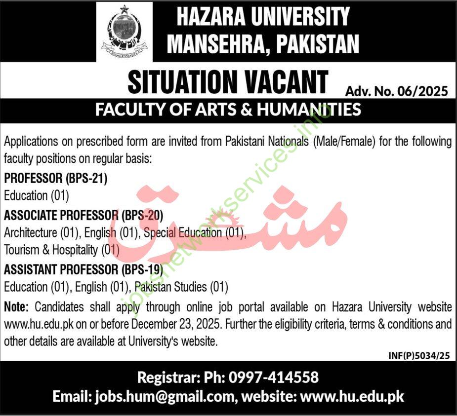 - Candidates must apply online via the Hazara University job portal: hu.edu.pk
