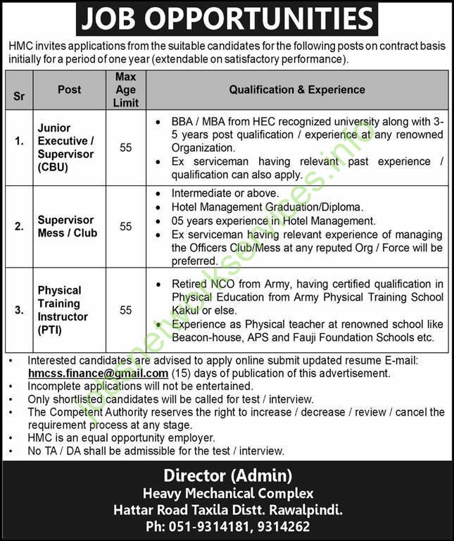📞 Contact Info | Director (Admin) Heavy Mechanical Complex Hattar Road, Taxila, Distt. Rawalpindi. Ph: 051-9314181, 051-9314262 |