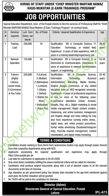 Hiring of Staff Under Chief Minister Maryam Nawaz Khud-Mukhtar (E-Earn Training) Program Jobs 2026 Latest