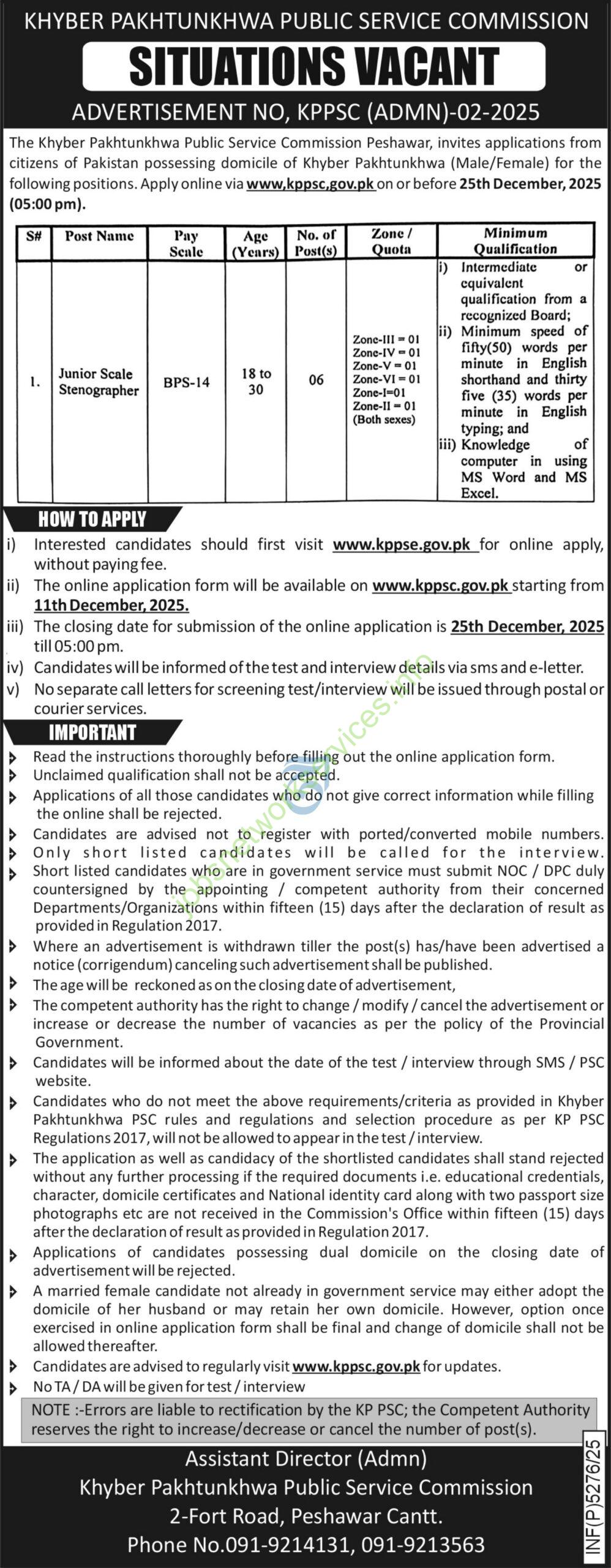 Based on the content of the advertisement KPPSC (ADMIN) 02-2025, here is a structured summary of the key job details and application information: