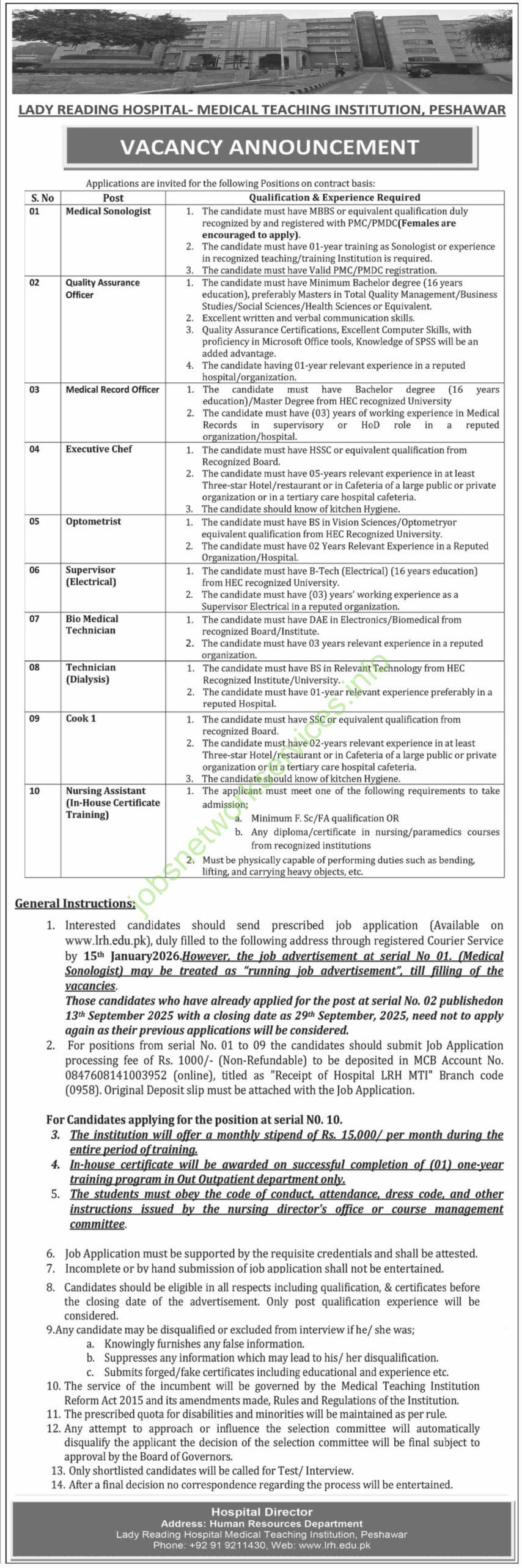 Lady Reading Hospital LRH Jobs 2026 Apply Online