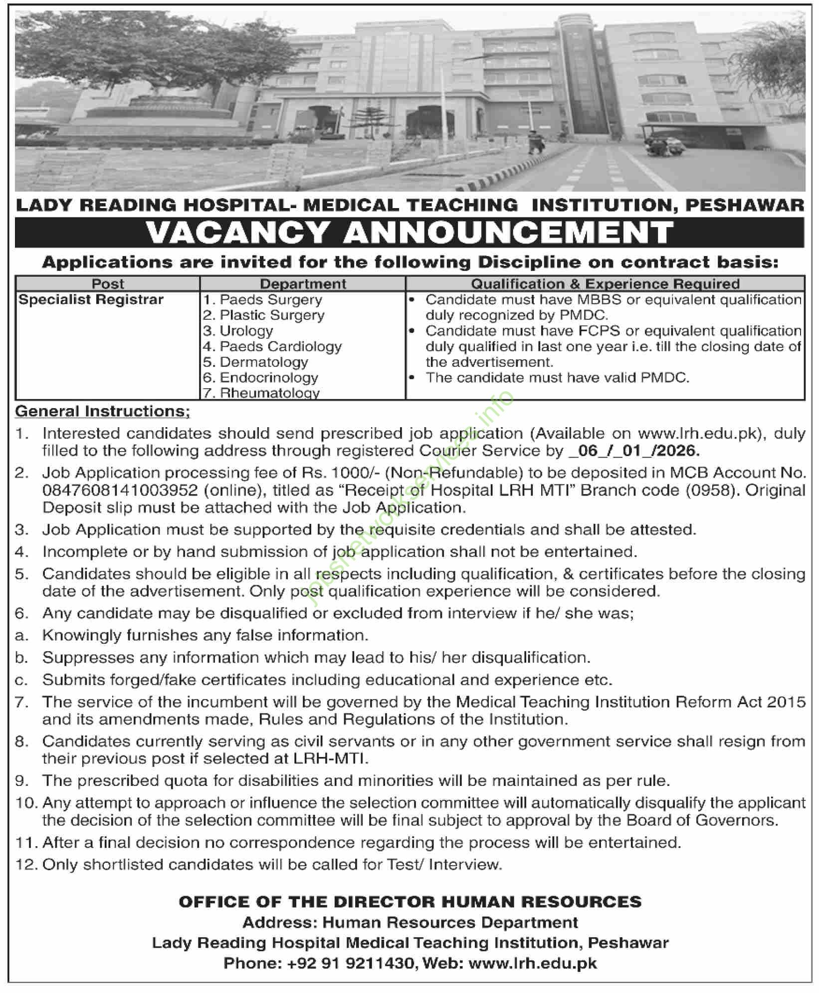Here is a summary of the key information from the Lady Reading Hospital (LRH-MTI) job advertisement: