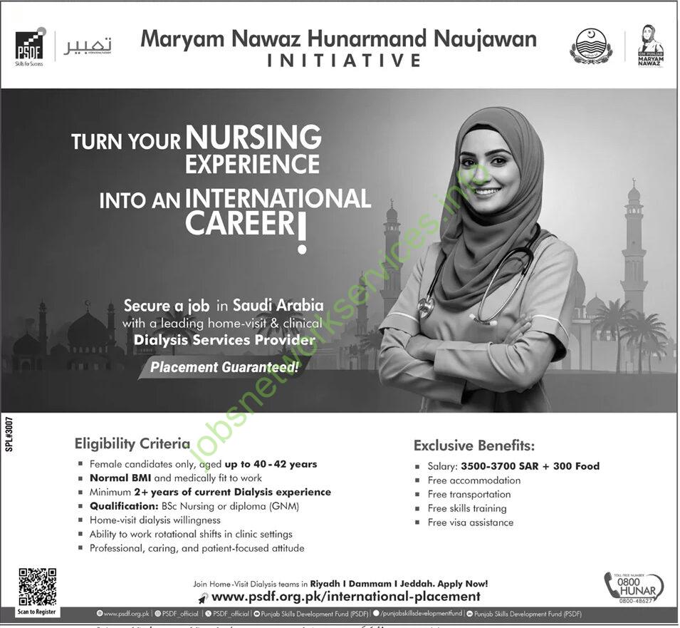 Maryam Nawaz Hunarmand Naujawan Nursing International Career Jobs at Saudi Arabia
