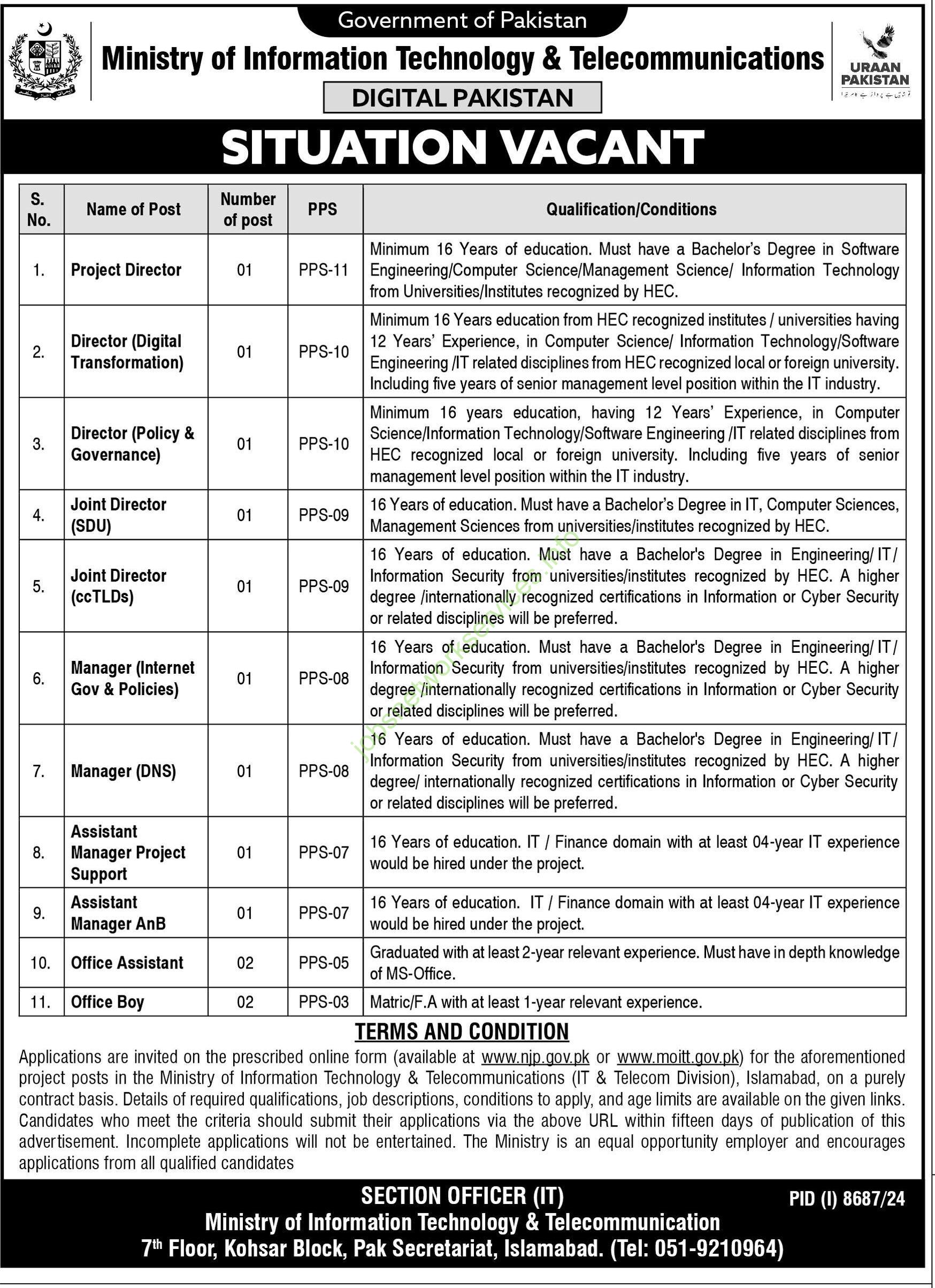 Ministry of Information Technology & Telecommunications Islamabad Jobs 2025