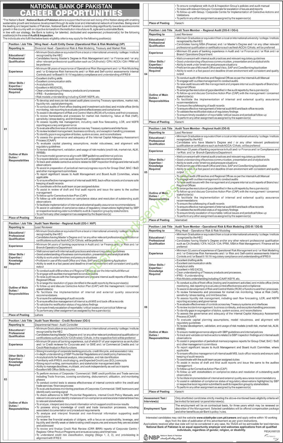 National Bank NBP Audit Team Member Jobs 2026 Apply Online