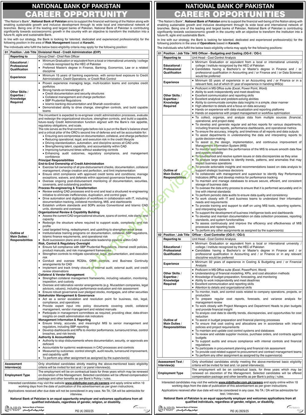 It looks like you’ve shared two job advertisements from the National Bank of Pakistan (NBP) for high-level positions in Risk Management and Operations.