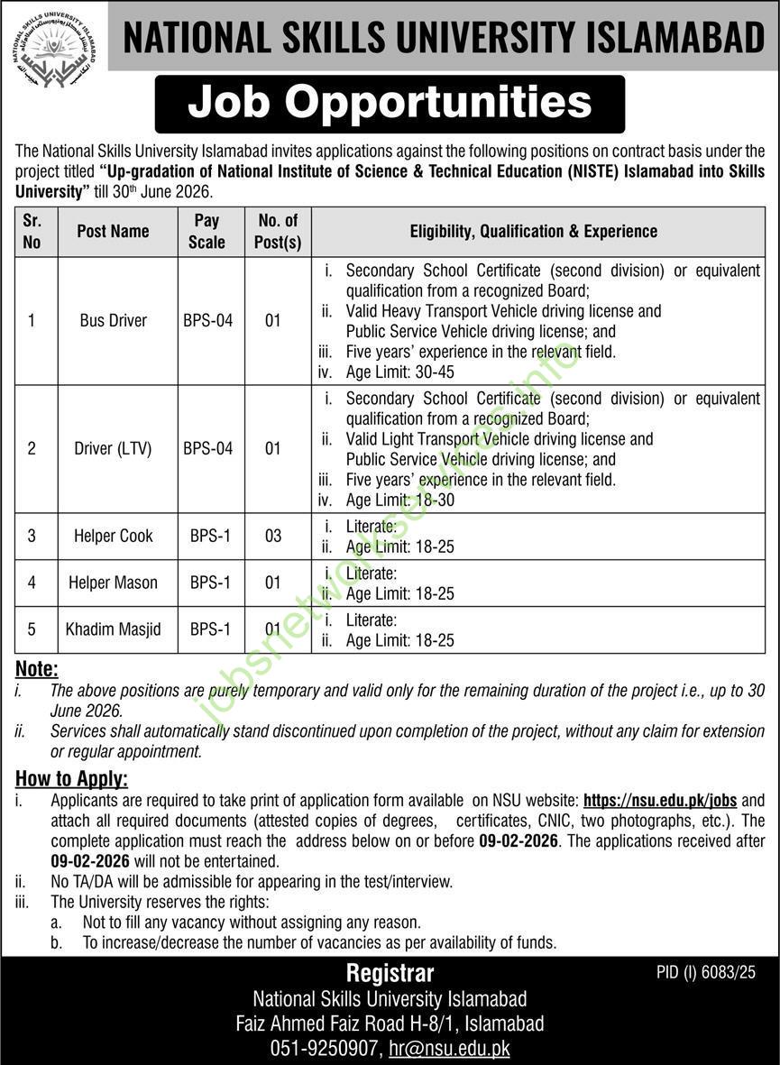 National Skills University Islamabad Jobs 2026 Latest