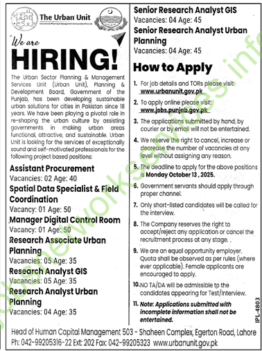Job Advertisement Summary: The Urban Unit, Lahore (2025)