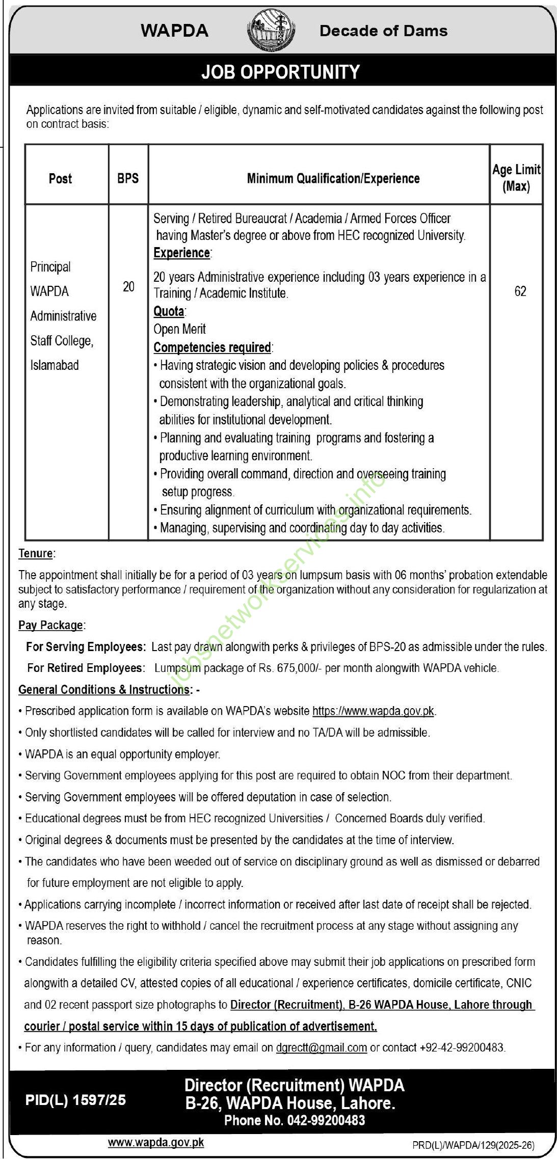 Principal Wapda Administrative Staff College Islamabad Jobs January 2026 Latest