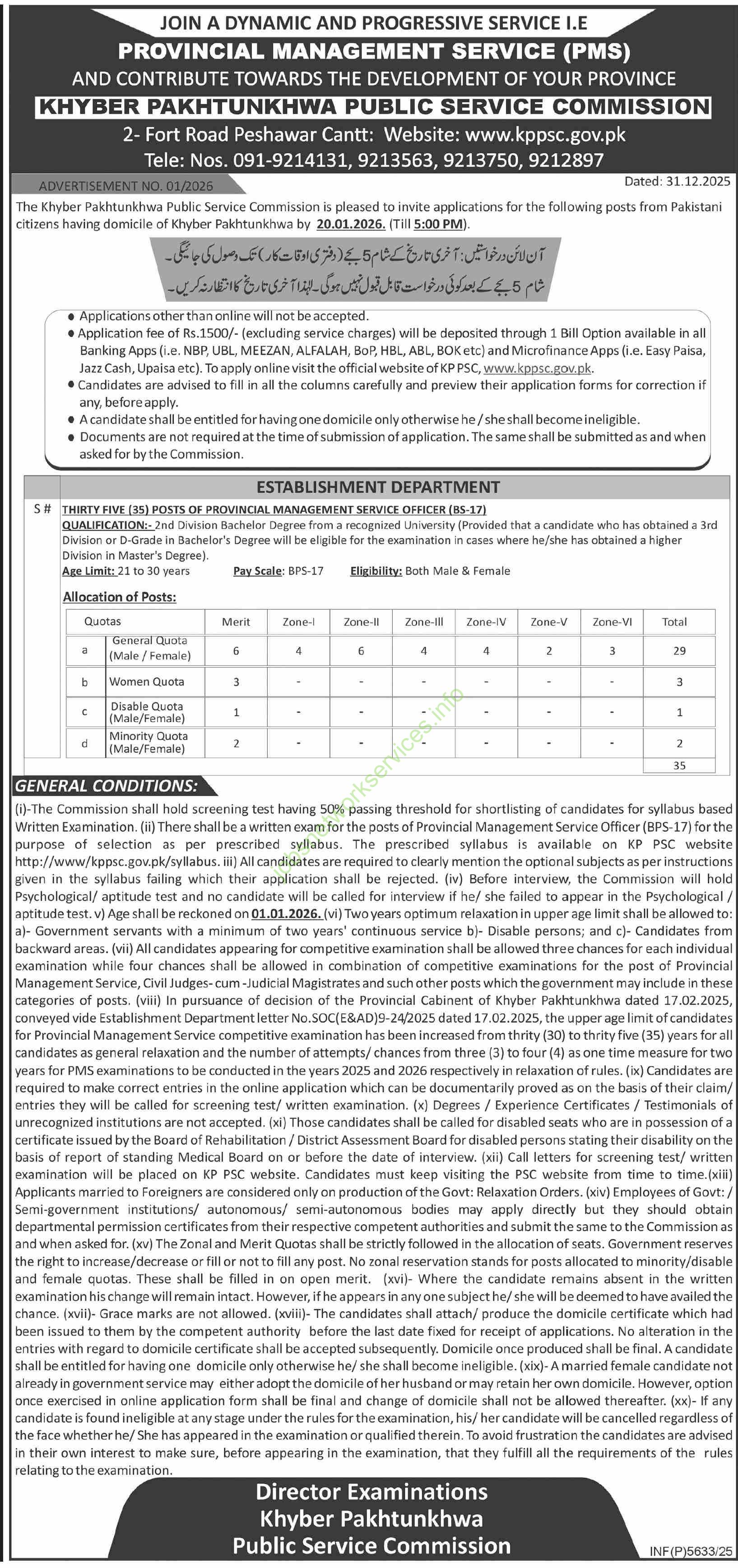 Summary of key details for the Provincial Management Service (PMS) Jobs 2026 advertised by the Khyber Pakhtunkhwa Public Service Commission (KP PSC):