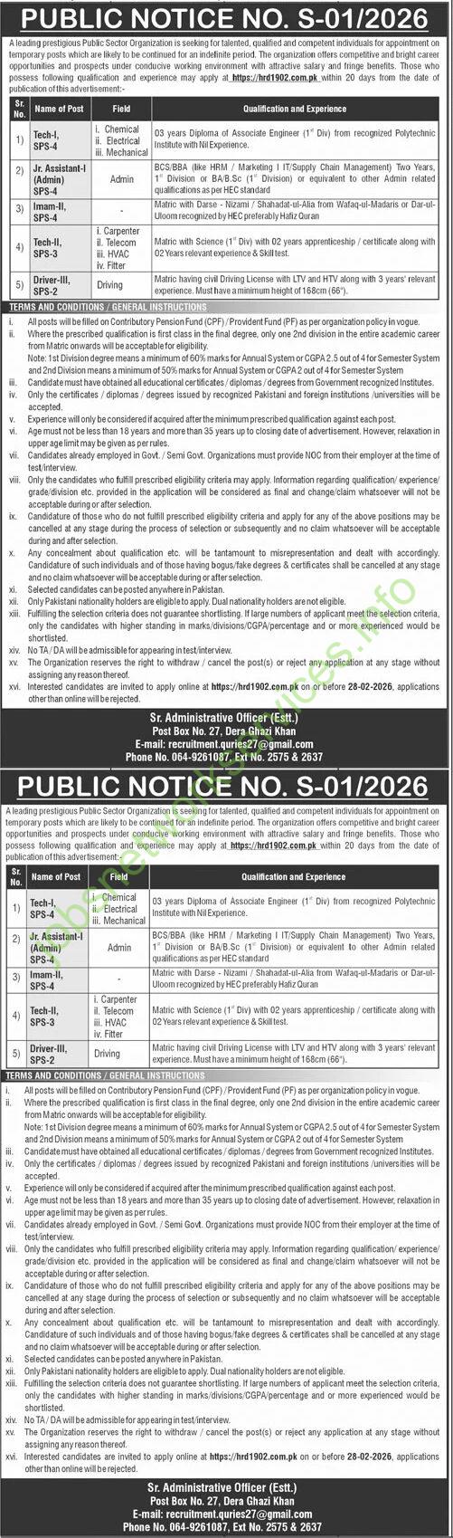 Public Notice No. S-01/2026 Jobs Apply Online