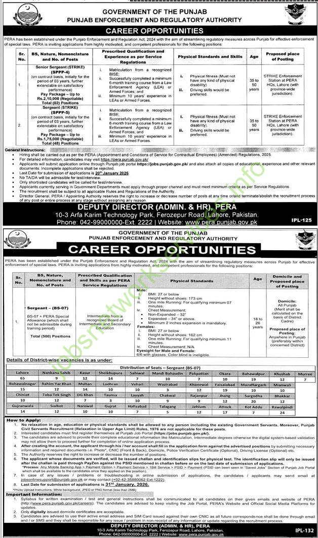 Punjab Enforcement and Regulatory Authority PERA Jobs 2026 Latest