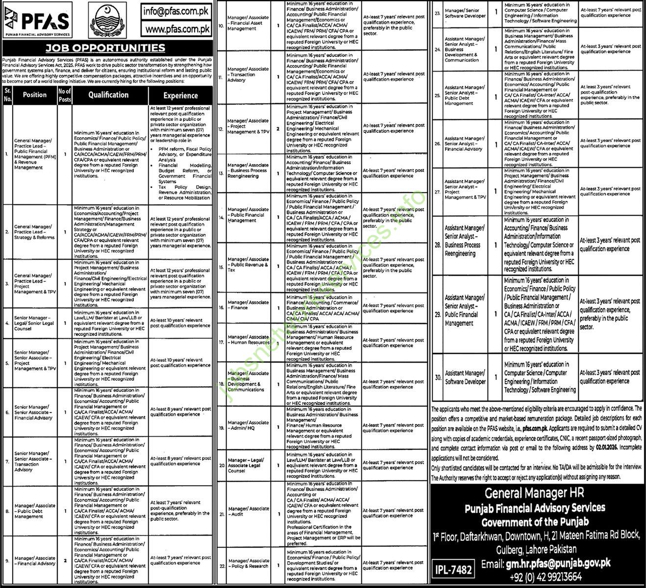 Punjab Financial Advisory Services PFAS Jobs January 2026 Latest
