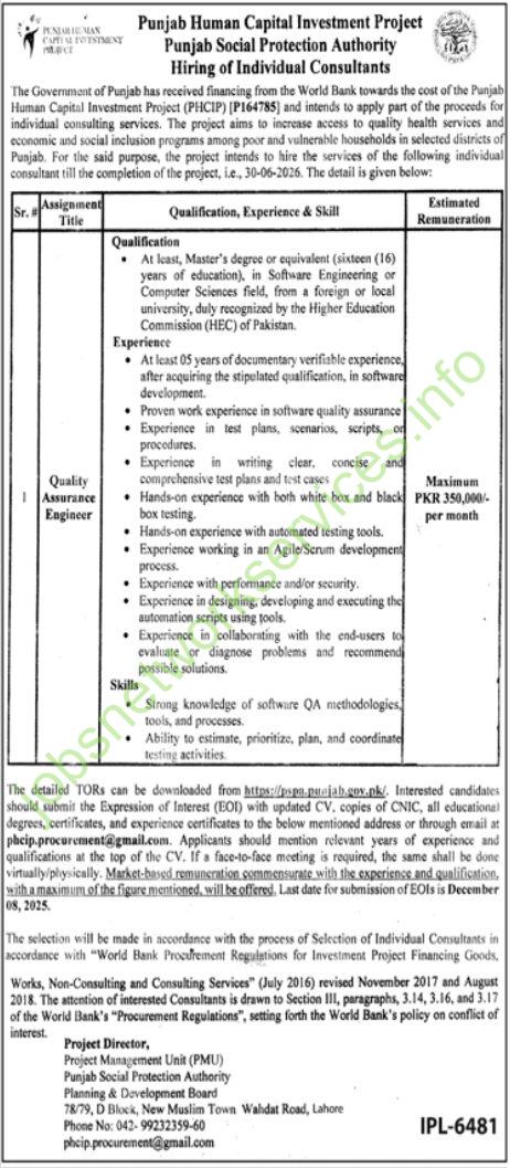 - Detailed Terms of Reference (TORs) can be downloaded from: https://pspa.punjab.gov.pk/