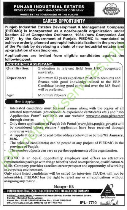 Punjab Industrial Estate Development & Management Company PIEDMC Jobs 2026 Latest