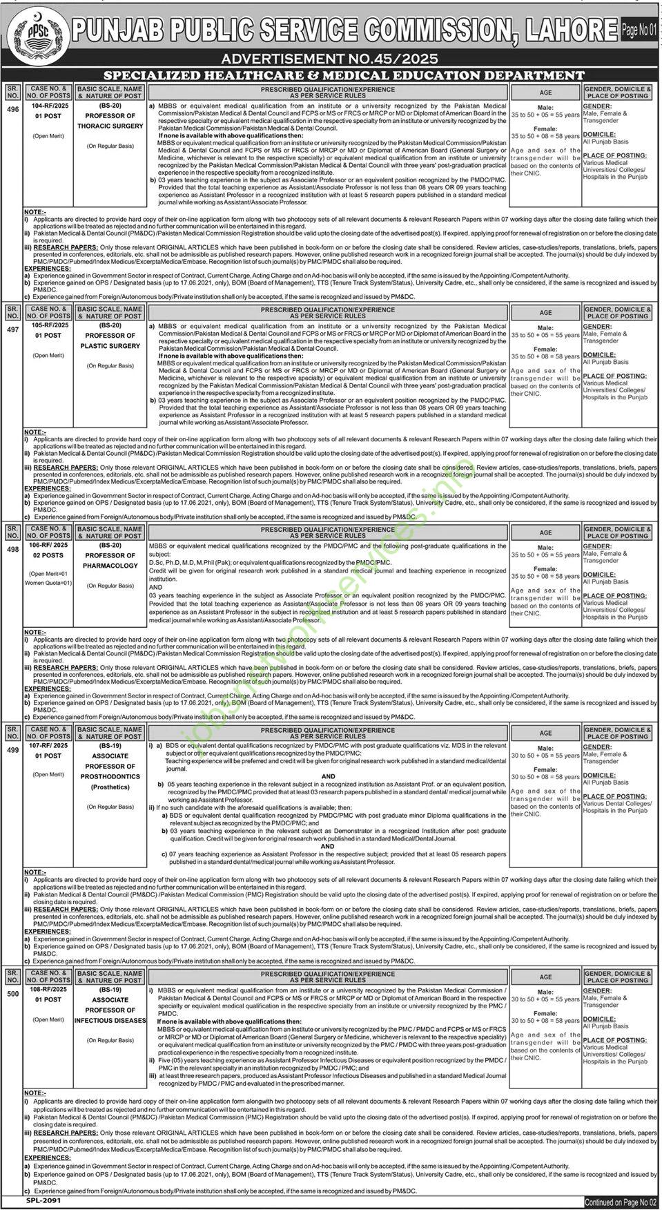 Punjab Public Service Commission PPSC Jobs 2025 Advertisement No.45/2025