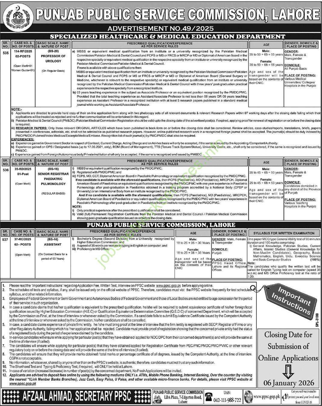 • Visit ppsc.gop.pk to apply online and for detailed “Important Instructions.”