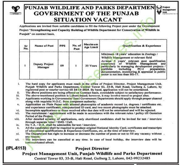 Punjab Wildlife and Parks Department Jobs 2025 Latest