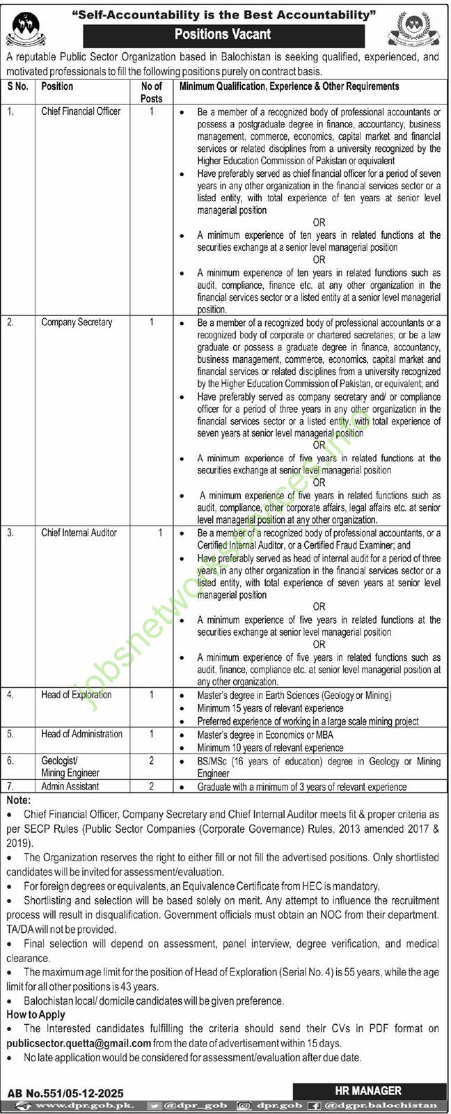 Reputable Public Sector Organization Balochistan Jobs 2025 Latest