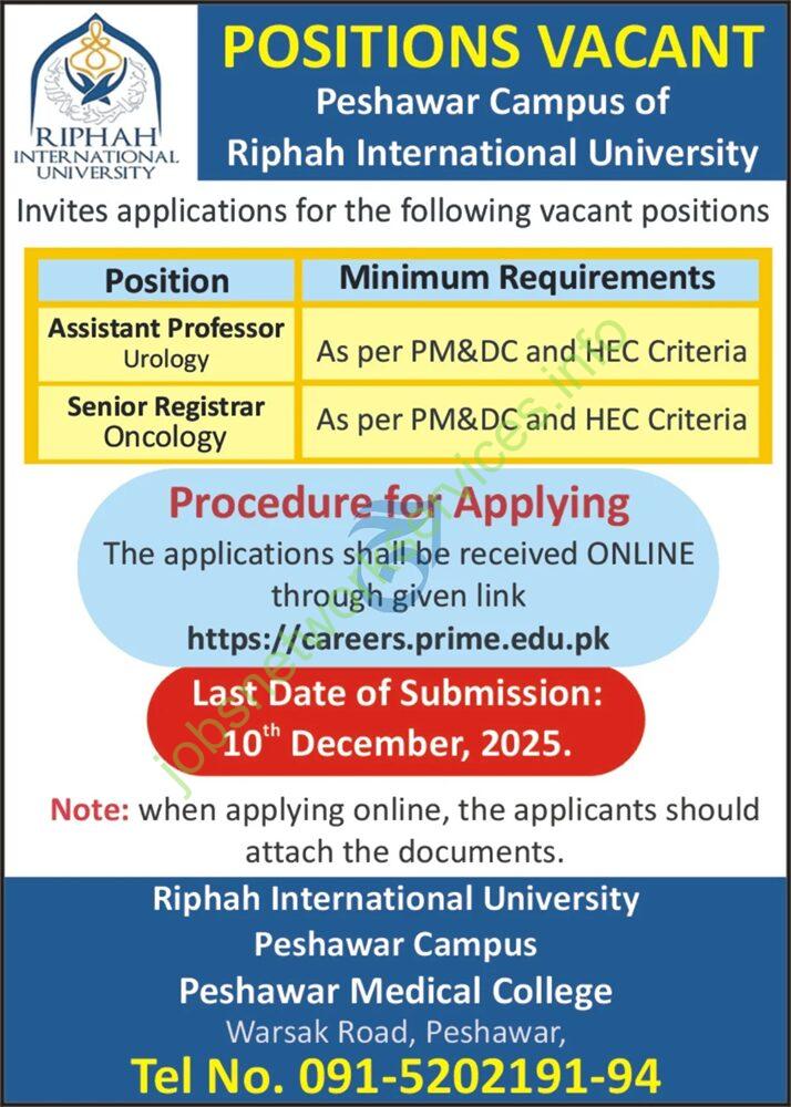 Here is the summary of the job advertisement from Riphah International University Peshawar for December 2025: