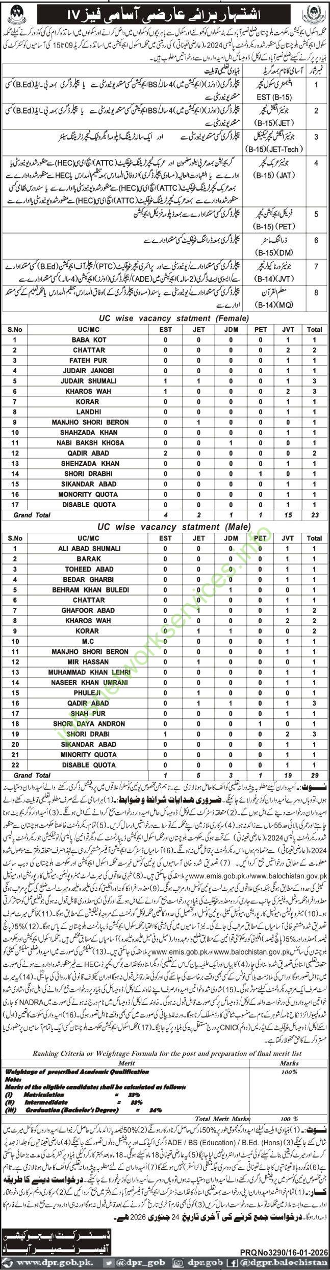 School Education Department Balochistan District Nasirabad Jobs 2026 Latest