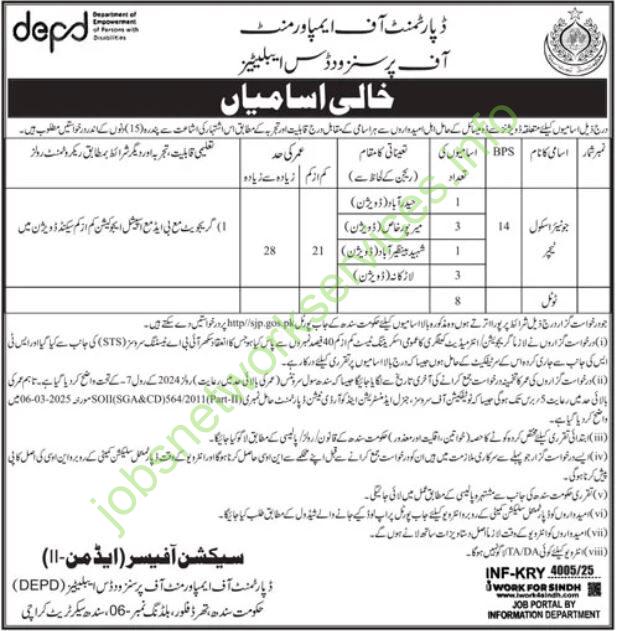 School Teacher Jobs at Department of Empowerment of Persons with Disabilities (DEPD)